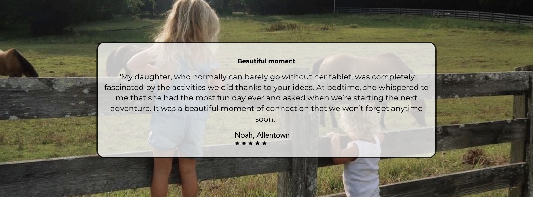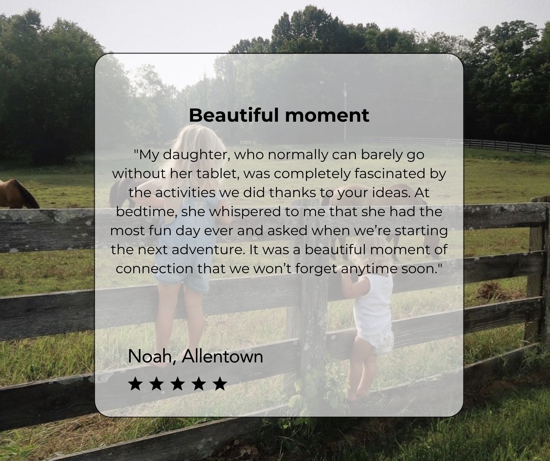 Our ideas stand out through their unique combination of accessibility, flexibility, and a strong focus on real, unforgettable experiences. We place great importance on ensuring that every family regardless of their budget can spend meaningful, high-quality time together. Our adventures are specifically designed to guide children away from screens and toward real-life experiences.